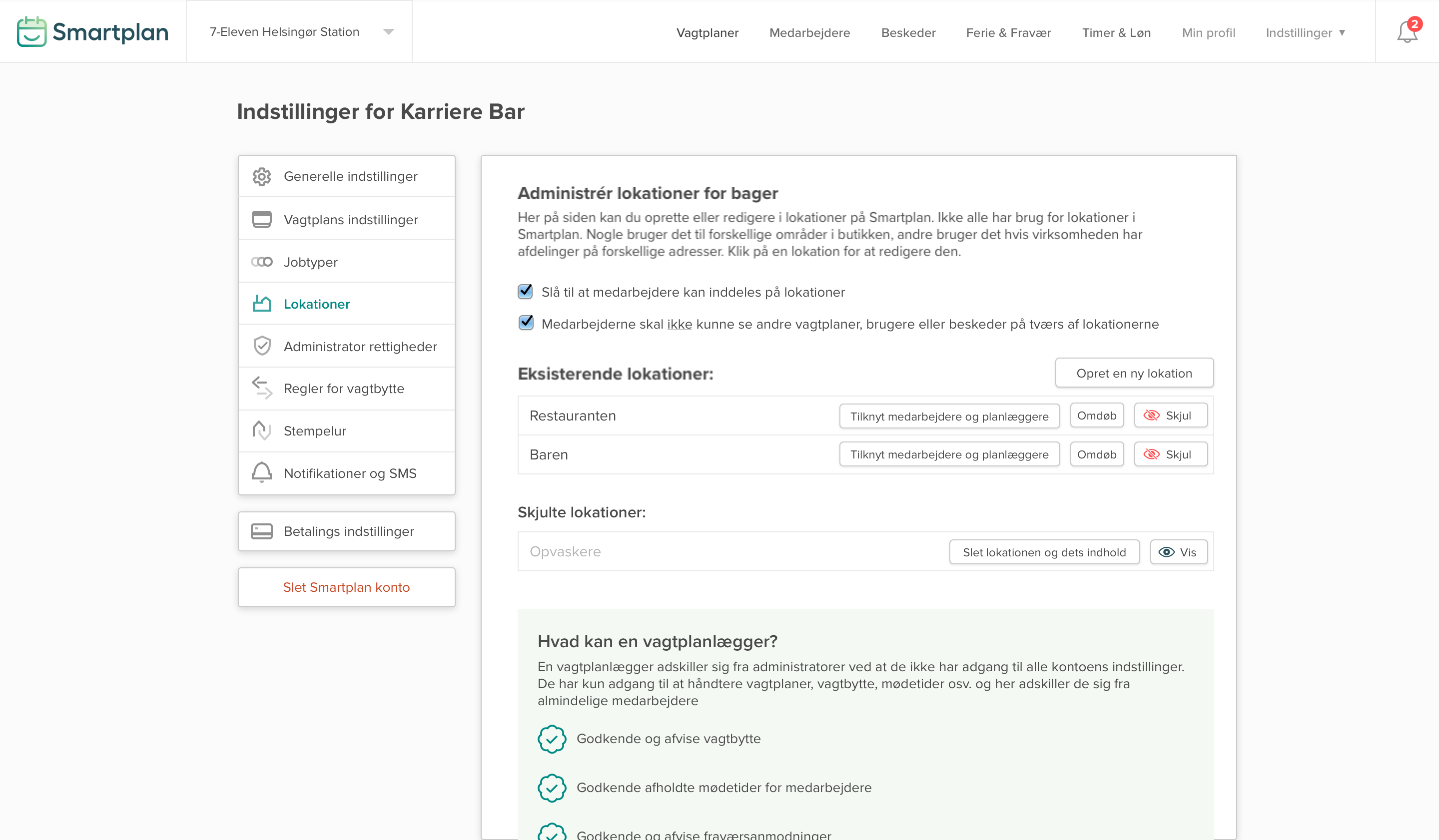 Du bestemmer selv, hvor meget der skal være synligt for alle på kontoen. Fremover kan du nemlig vælge, om medarbejderne skal have adgang til at se vagtplaner, brugere eller beskeder på tværs af lokationerne.