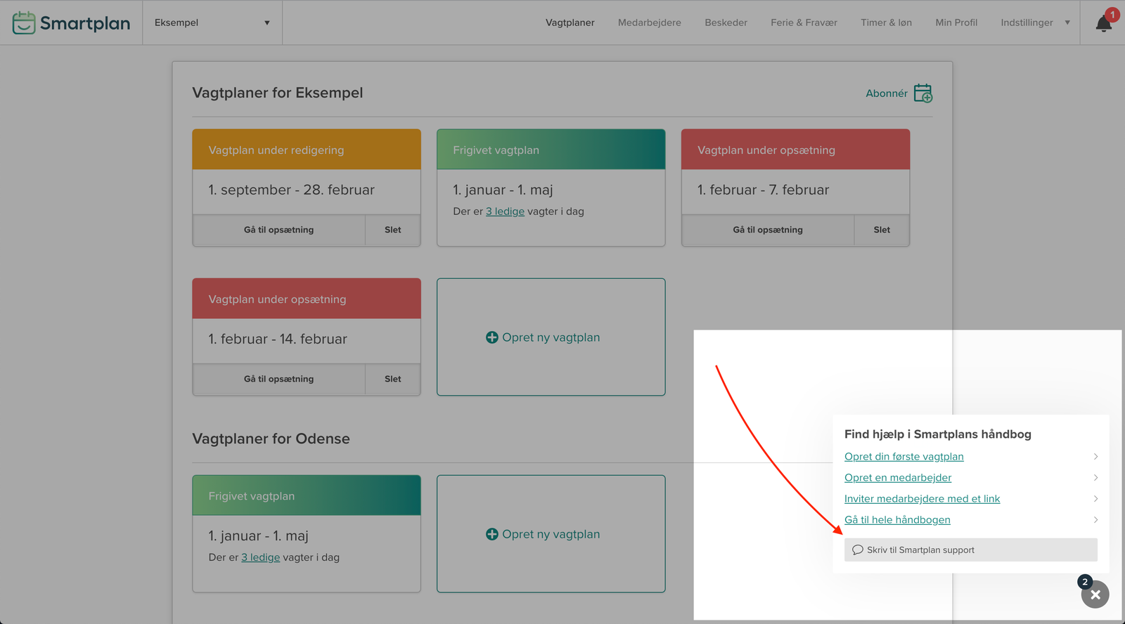 Du kan skrive til os via chatten eller på mail support@smartplan.dk.