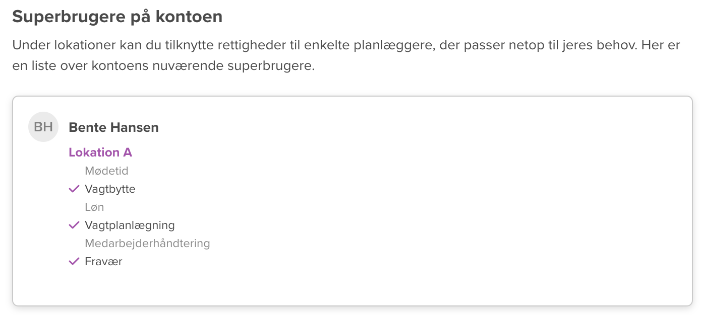 Ved at lave en klar opdeling i, hvem der har hvilke rettigheder på kontoen, reducerer du risikoen for, at der bliver lavet fejl i vagtplaner, løn, fravær eller lignende. Hvis der er færre personer, som har adgang til hver funktion, er der færre mennesker til at lave fejl. Samtidig sikrer du, at dine superbrugere ikke bliver forstyrret af områder i systemet, som de alligevel ikke skal have noget med at gøre. Det gør, at de i stedet kan arbejde endnu mere effektivt med lige præcis deres ansvarsområde.