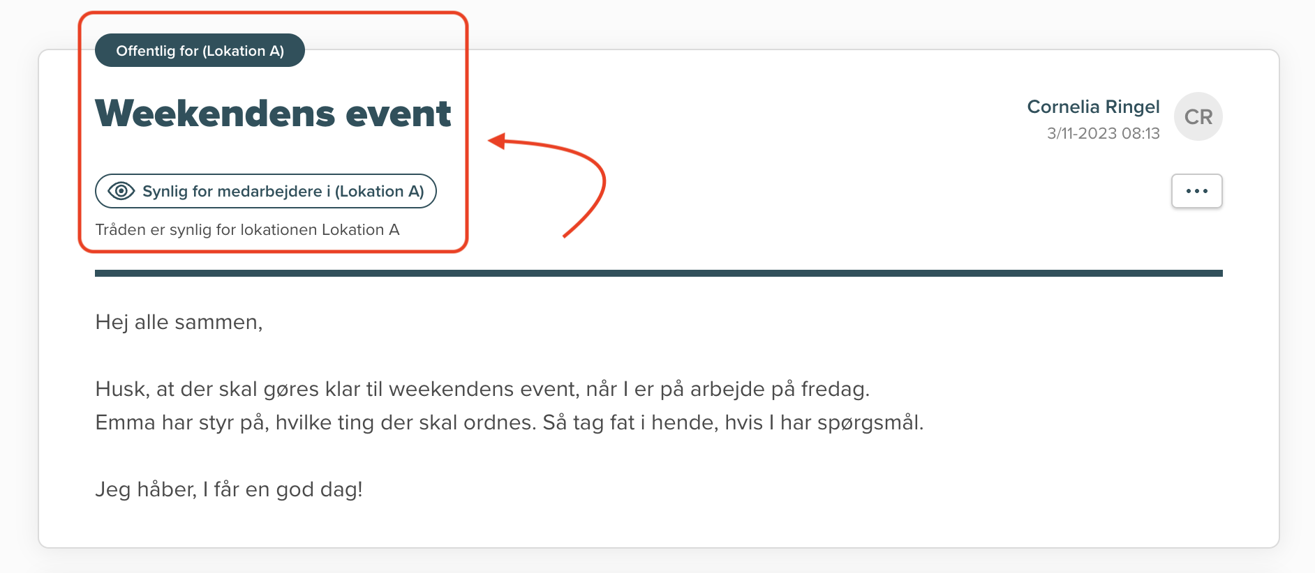 Hvis I vælger, at medarbejderne ikke skal have adgang til at se data fra lokationer, som de ikke er tilknyttet, vil I også opleve en mindre risiko for fejl i forhold til beskeder og kommunikation. I så fald vil både du og medarbejderne kun kunne sende beskeder til en lokation ad gangen. Beskederne deles ikke på tværs af lokationerne. Det forhindrer utilsigtede informationsudvekslinger og sikrer, at kommunikationen forbliver målrettet og relevant.