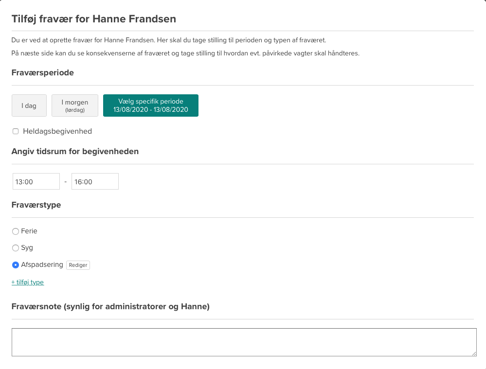 Når fravær kun kan registreres for en hel dag, så afspejler det ikke den virkelighed du og dine medarbejdere lever i. For hvad nu hvis en medarbejder kun holder fri torsdag eftermiddag og godt kan tage en vagt torsdag morgen. Så har det indtil nu set ud som om at medarbejderen slet ikke kunne arbejde torsdag. Da det så ud som om hun havde fri hele dagen.