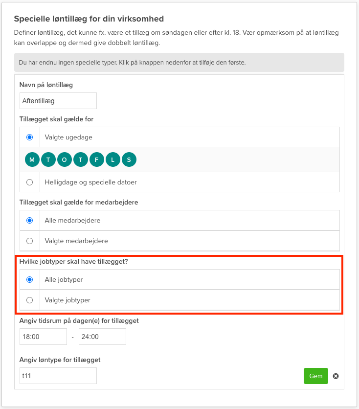 På den måde kan du sørge for, at medarbejderne kun modtager tillægget, hvis deres vagter har haft en bestemt jobtype.