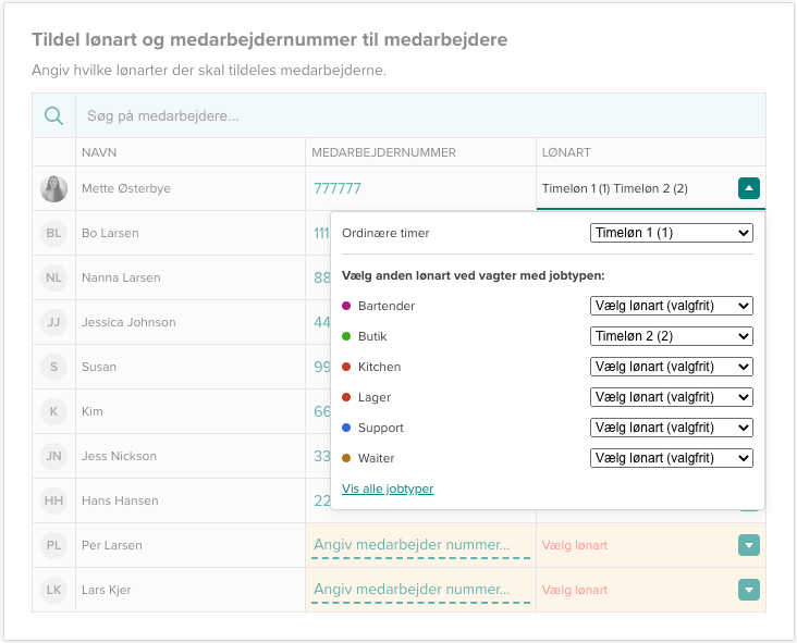 Derudover har du i samme boks mulighed for at tilføje hver enkelt medarbejders løntype: