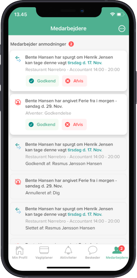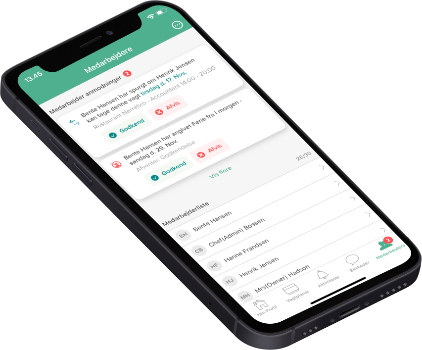 Endelig vil du nu også kunne se et badge på menupunktet ”Medarbejdere” i appen. Dette vil fortælle dig, hvor mange anmodninger der ligger og venter på, at du tager stilling til dem – præcis, som du kender det, når du er logget ind på en computer.