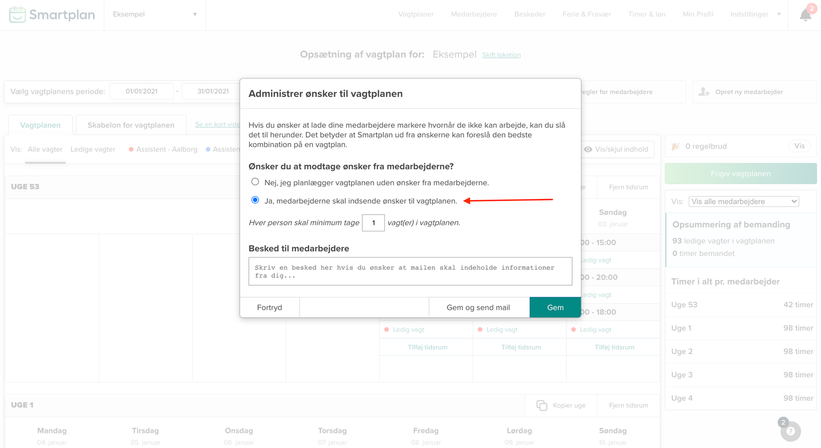 Gør vagtplanen åben for ønsker